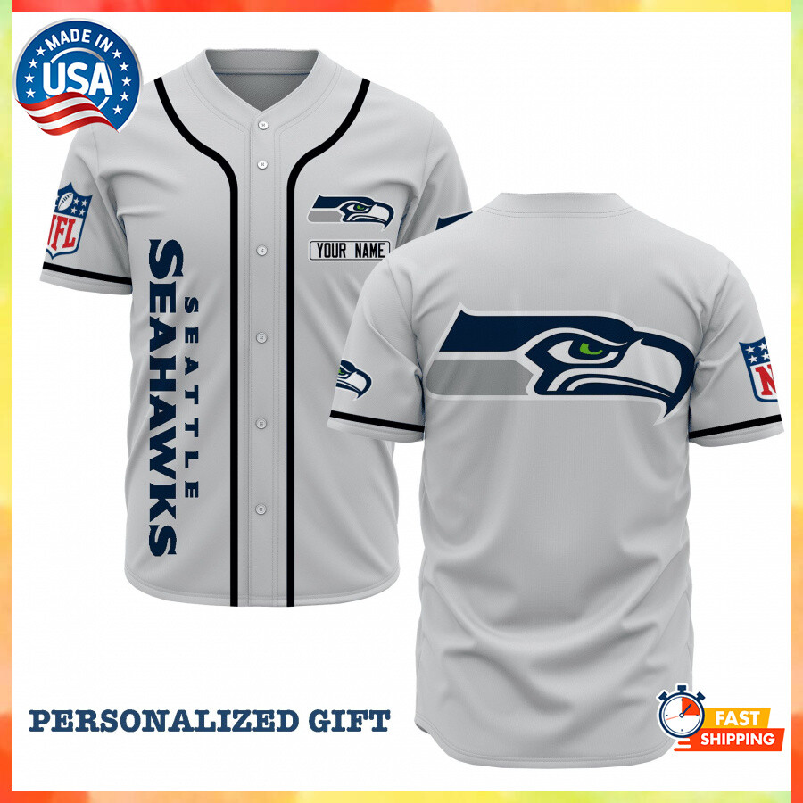 Seattle Seahawks Custom Name Baseball Jersey Casual Shirt For Men Women Grey Ebay